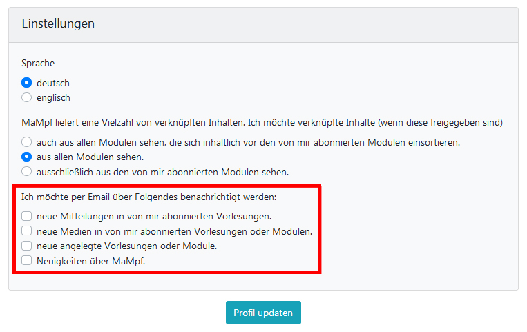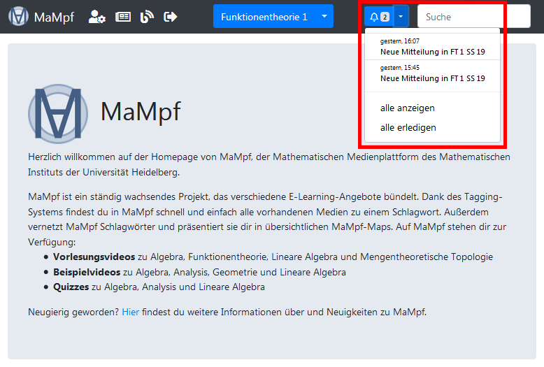 MaMpf-Notifications sind Benachrichtigungen zu: