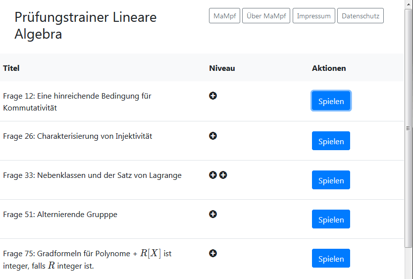 Mit leerem Magen lässt sich wenig wagen und noch weniger ausrichten. Darum hat das MaMpf-Team die Küche verwüstet, um euch eine ganz besondere Speise zuzubereiten, die euch für die Schlacht stärkt: den interaktiven Teil des Prüfungstrainer Lineare Algebra.