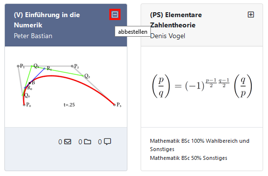 Veranstaltungen können in den Profileinstellungen und seit neustem auch auf der Startseite abonniert und abbestellt werden. Auf der Startseite klickt man bei der jeweiligen Veranstaltung zum Abonnieren auf das Plus, zum Abstellen auf das Minus. Zudem ist es nicht mehr möglich, Module zu abonnieren.