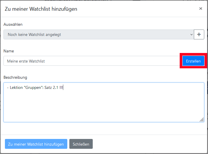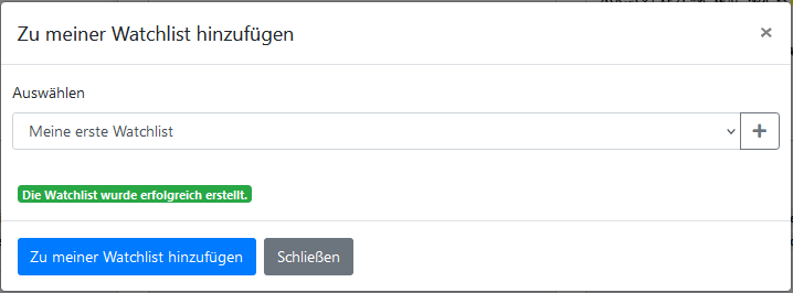 Wenn du einem Medium begegnest, das du nicht vergessen und auf eine Liste setzen möchtest, klicke auf der Medicacard auf das Listenicon oben rechts. Daraufhin öffnet sich ein Dialogfeld. Dort klickst du auf den Plusbutton, um eine neue Liste anzulegen, oder wählst im Dropdownmenü eine bereits vorhandene Liste aus. Damit eine neue Liste angelegt wird, musst du auf „Erstellen“ klicken. Schließe den Vorgang ab, indem du den Button „Zu meiner Watchlist hinzufügen“ betätigst. Nun erscheint auf der Mediacard zu diesem Medium oben rechts ein Lesezeichenicon. Wenn du mit dem Mauszeiger darüber fährst, kannst du herausfinden, auf welcher Liste sich dieses Medium befindet. Du kannst ein Medium übrigens auch auf mehrere Listen setzen.