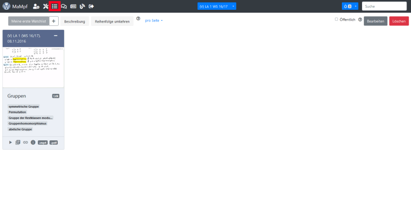 Nun kannst du dich voll und ganz den Medien deiner Liste widmen. Zudem kannst du: