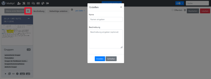 - Eine neue Liste anlegen, indem du auf den Plusbutton oben links klickst.