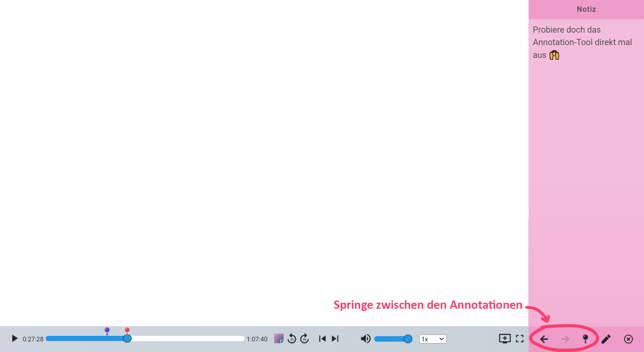 Wir haben ein neues Feature für euch, das Annotation Tool 🙌 Damit könnt ihr ab sofort eigene Notizen im Video-Player anlegen und bei Bedarf auch veröffentlichen oder nur mit der dozierenden Person teilen. Klickt dazu einfach im Video-Player auf den neuen Button.