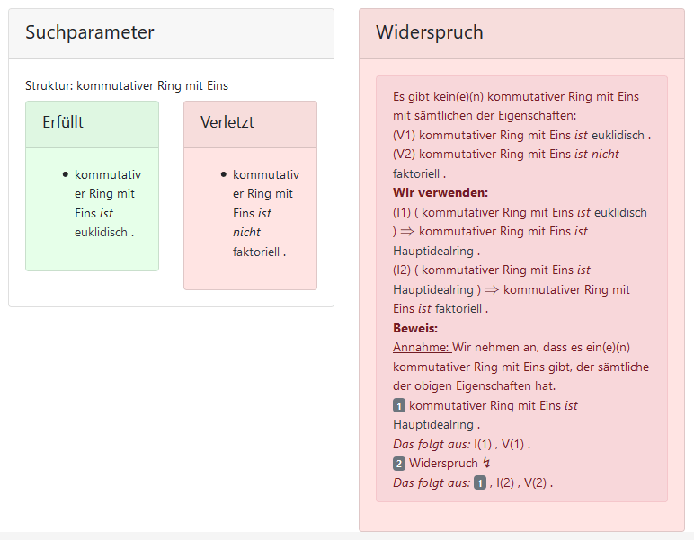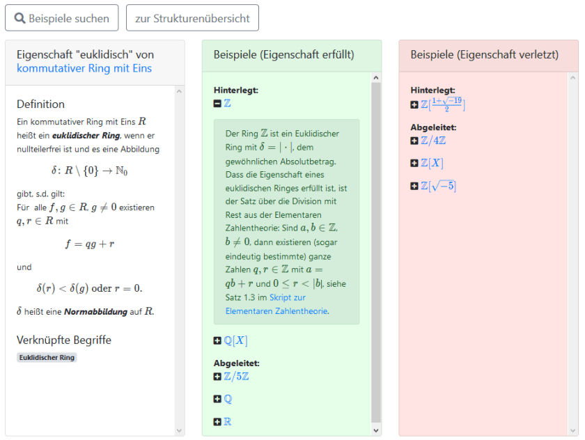 Mit der „Erkenntnisfördernde Datenbank zur Beispielerfassung und -entwicklung“ kannst du Definitionen nachschlagen und mathematische Objekte mit bestimmten Eigenschaften finden. Hat ErDBeere ein entsprechendes Objekt gefunden, stellt sie Erklärungen (Texte oder Videos) bereit, damit du nachvollziehen kannst, warum ein Objekt eine bestimmte Eigenschaft besitzt. Falls es das gesuchte Objekt nicht geben kann, erkennt ErDBeere dies und liefert dir einen computergenerierten Beweise dafür. Manchmal hat ErDBeere auch überhaupt keine Ahnung und steht dann auch dazu.