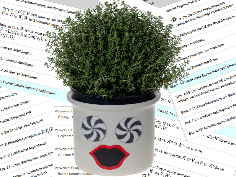Medien, auf die im THymE-Player verwiesen wird, sind verlinkt und damit nur einen Klick entfernt. Somit kannst du mit dem THymE-Player schnell und gezielt Informationen nachschlagen und dein Wissen auffrischen. Das kann dir beim Detailsverständnis helfen, da in der Mathematik häufig auf bereits Behandeltes zurückgegriffen wird, um darauf aufbauend neue Definitionen einzuführen und Aussagen zu beweisen.
