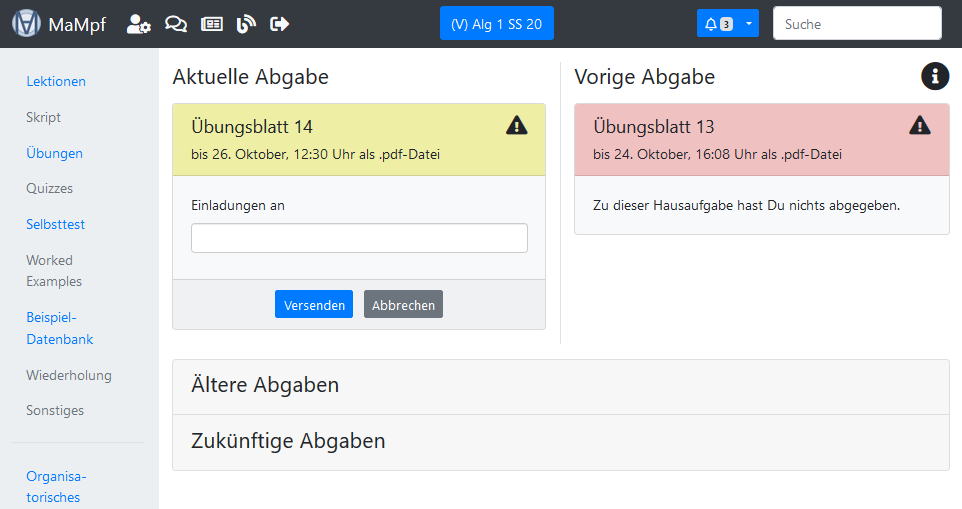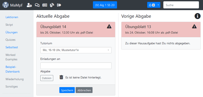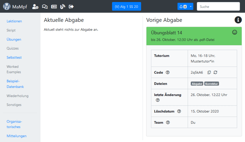 Registrierte MaMpf-Nutzer*innen können bearbeitete Übungsblätter abgeben und Korrekturen ansehen. Hier erfährst du alles, was du dazu wissen musst.